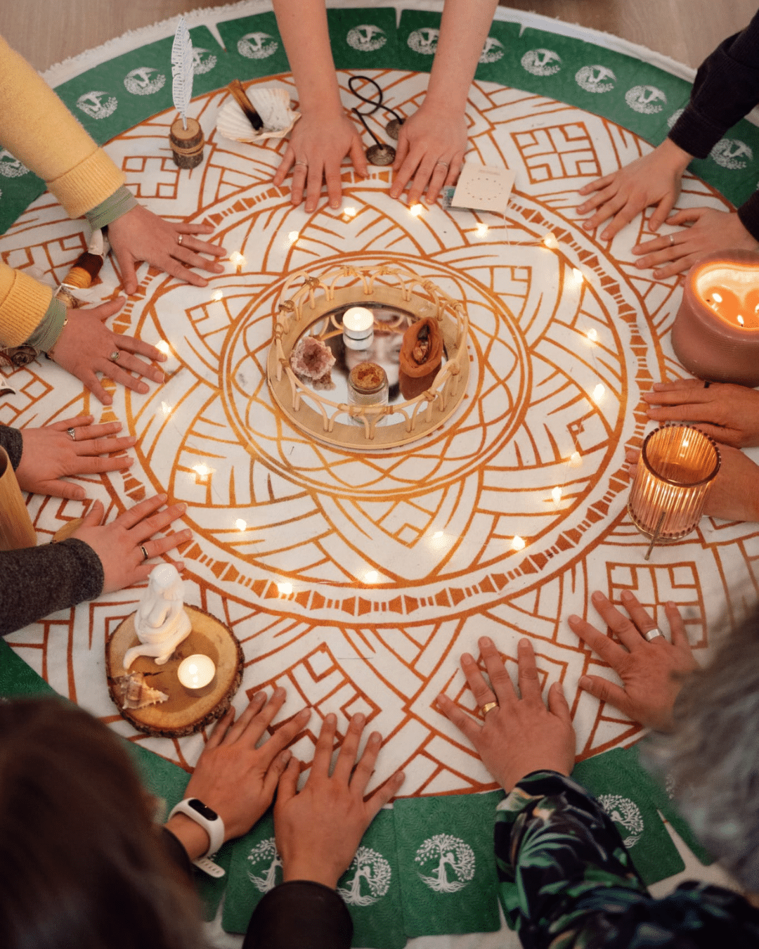 Je propose également des cercles, ateliers et cérémonies pour celles et ceux qui souhaitent explorer dans un cadre collectif, symbolique et soutenant. Ces espaces permettent d’approfondir autrement : par le lien, les rituels, la parole partagée et les gestes sacrés.